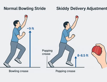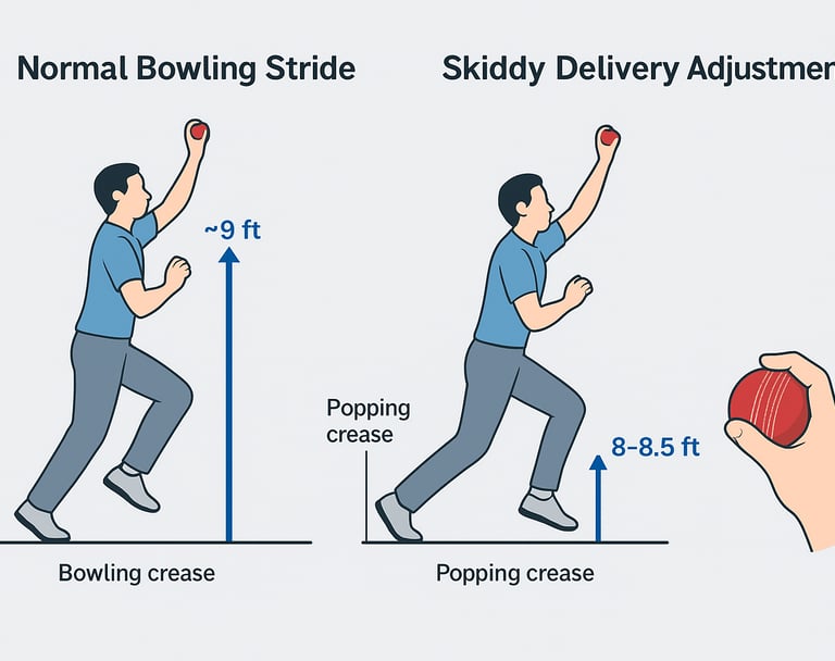 By lowering your release point and keeping the seam upright, you’re shifting energy from bounce into speed. The result? A skiddy, deceptive pace delivery that hurries the batsman.